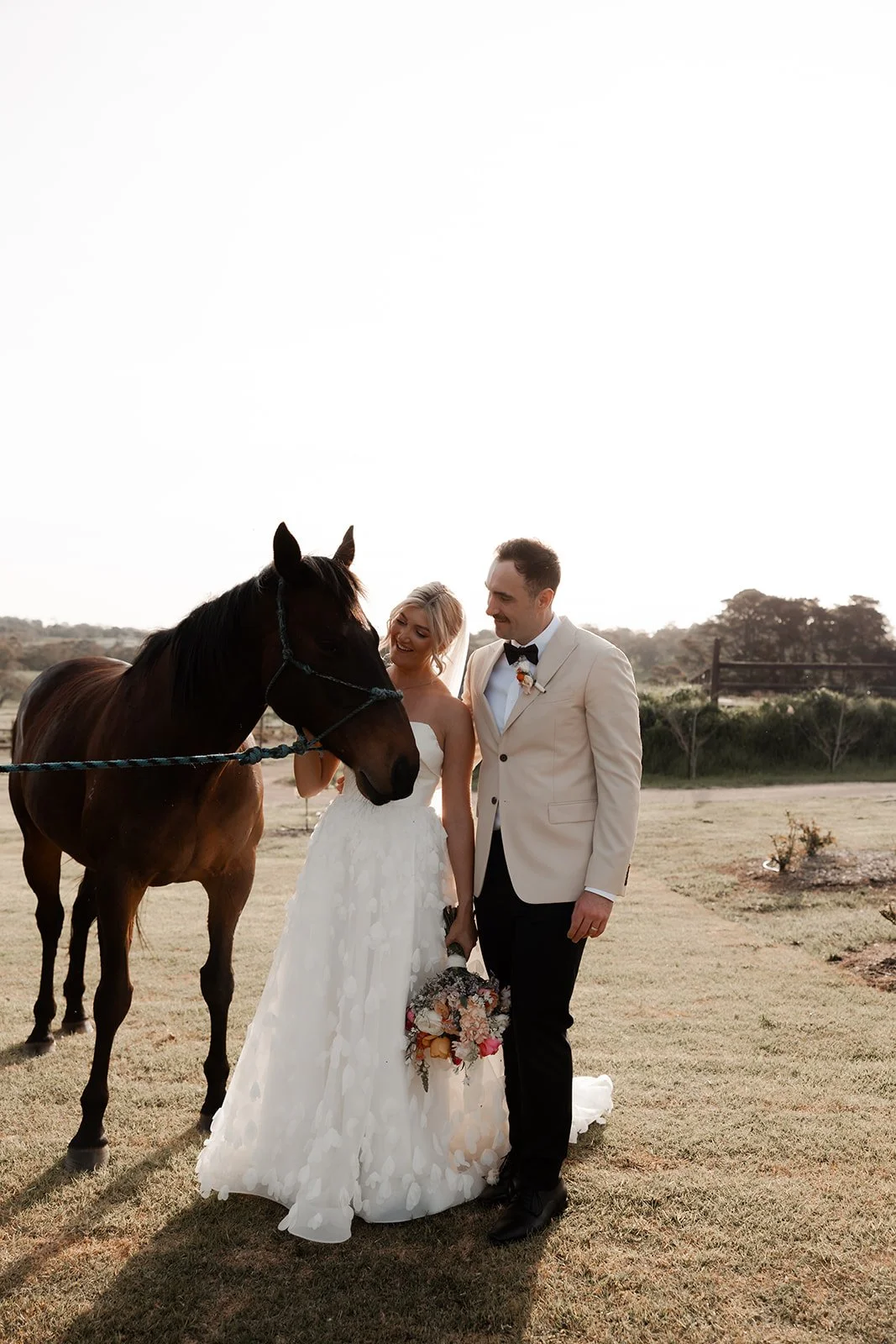 A highlight of the day was the couple's photo session with Harry, the farm's beloved horse. Known for his affectionate nature, Harry was more than happy to pose with the newlyweds, creating some truly magical moments. These enchanting photos captured the essence of the day and will undoubtedly be cherished memories for years to come.